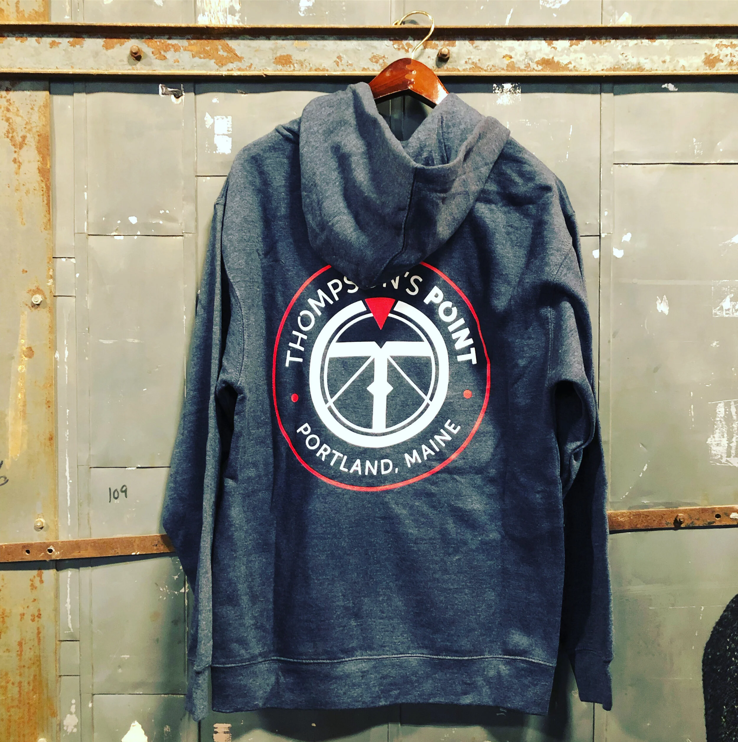 Thompson's Point is a piece of property in Portland, Maine that was revitalized by a group of people with a unique mission—to create a new city "district." The property's location is a hub of transportation, with Portland Trails, bus station, and train station on premise, as well as waterfront for boat approach, and the airport very close by. The land itself is historic, and the owners transplanted the old Depot structure from the demolished Union Station. The uniqueness of this location as a place where forms of travel converge and its industrial history was the inspiration for the brand design.